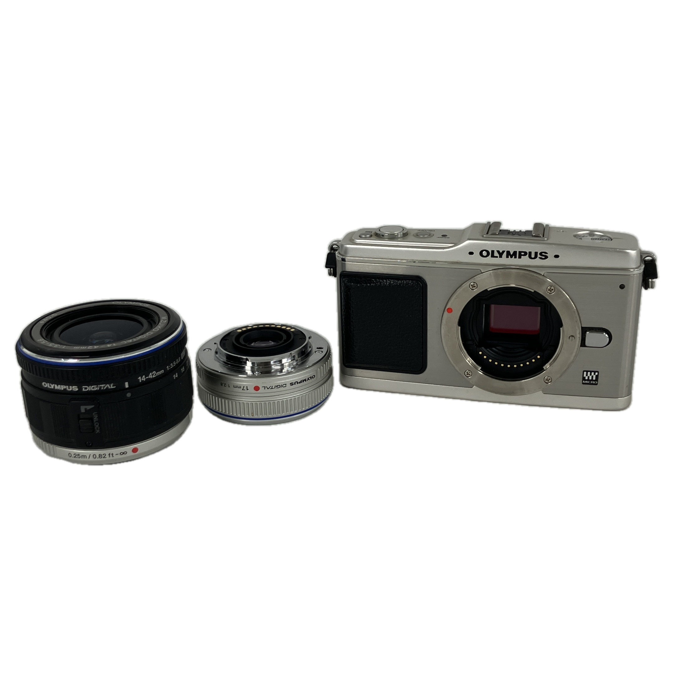 OLYMPUS PEN E-P1 ミラーレス一眼 M.ZUIKO DIGITAL 17mm F2.8 M.ZUIKO DIGITAL ED14-42mm F3.5-5.6 ツインレンズキット 充電器欠品 中古