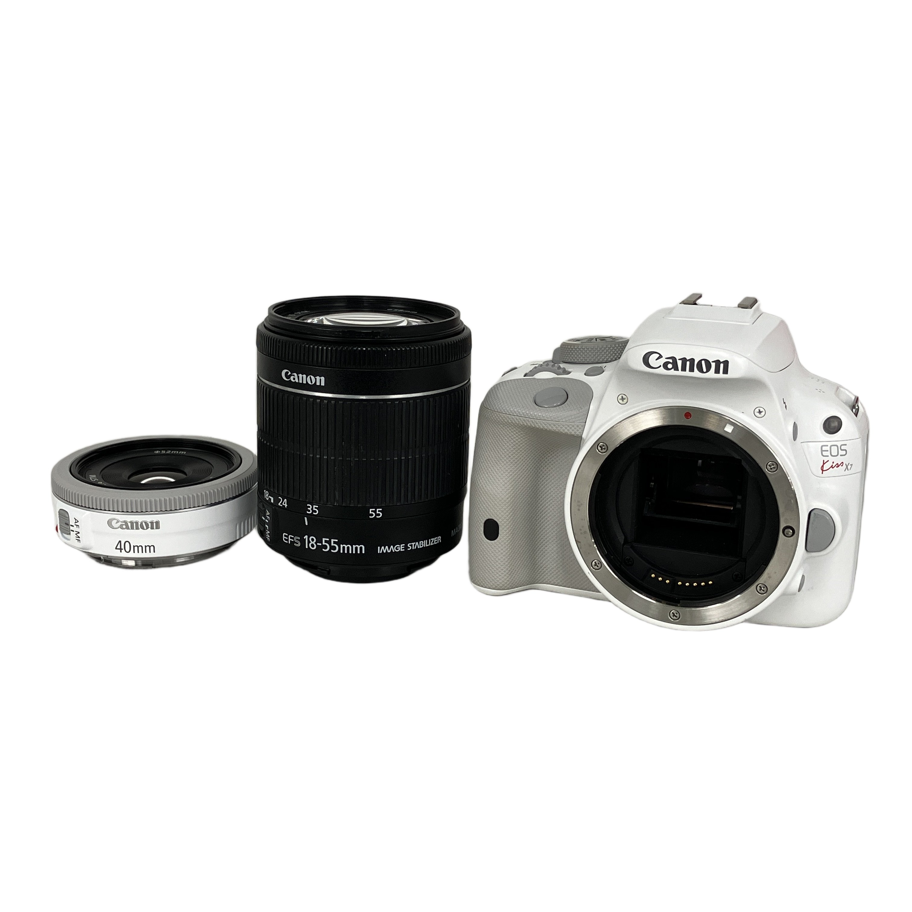 Canon EOS Kiss X7 ホワイト EF 40mm 1:2.8 STM EF-S 18-55mm 1:3.5-5.6 IS STM レンズキット 中古