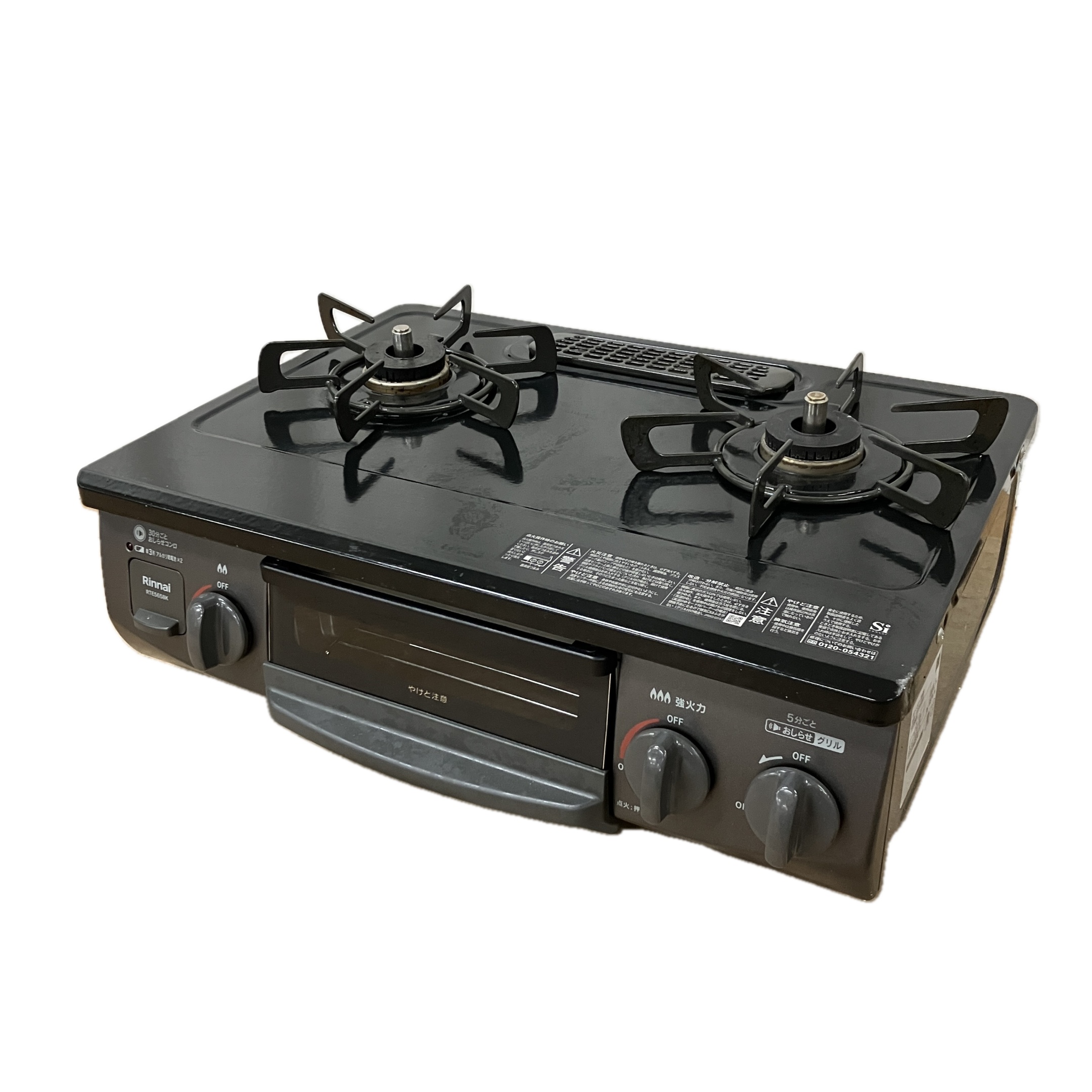 Rinnai RTE565BKR ガステーブル ガスコンロ 2口 水無し片面焼グリル Siセンサー 右強火 2025年製 リンナイ 中古
