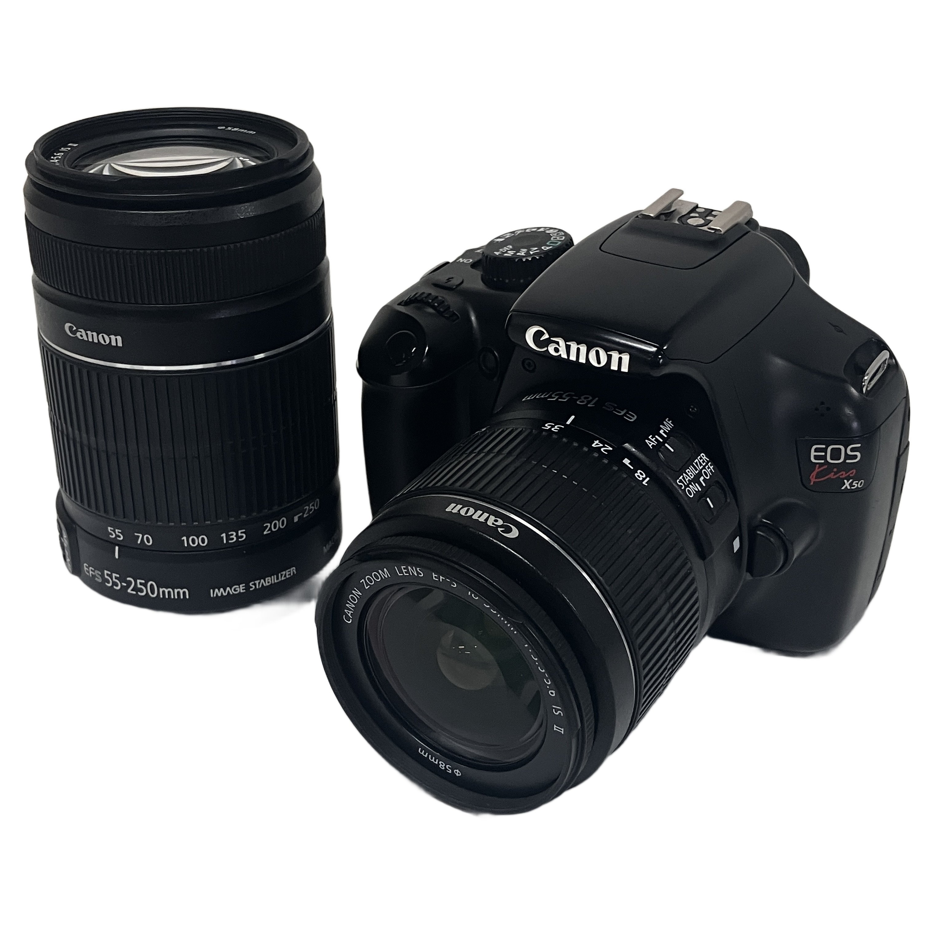Canon DS126291 EOS Kiss X50 18-55mm 55-250mm レンズセット デジタル一眼レフ カメラ キャノン 中古