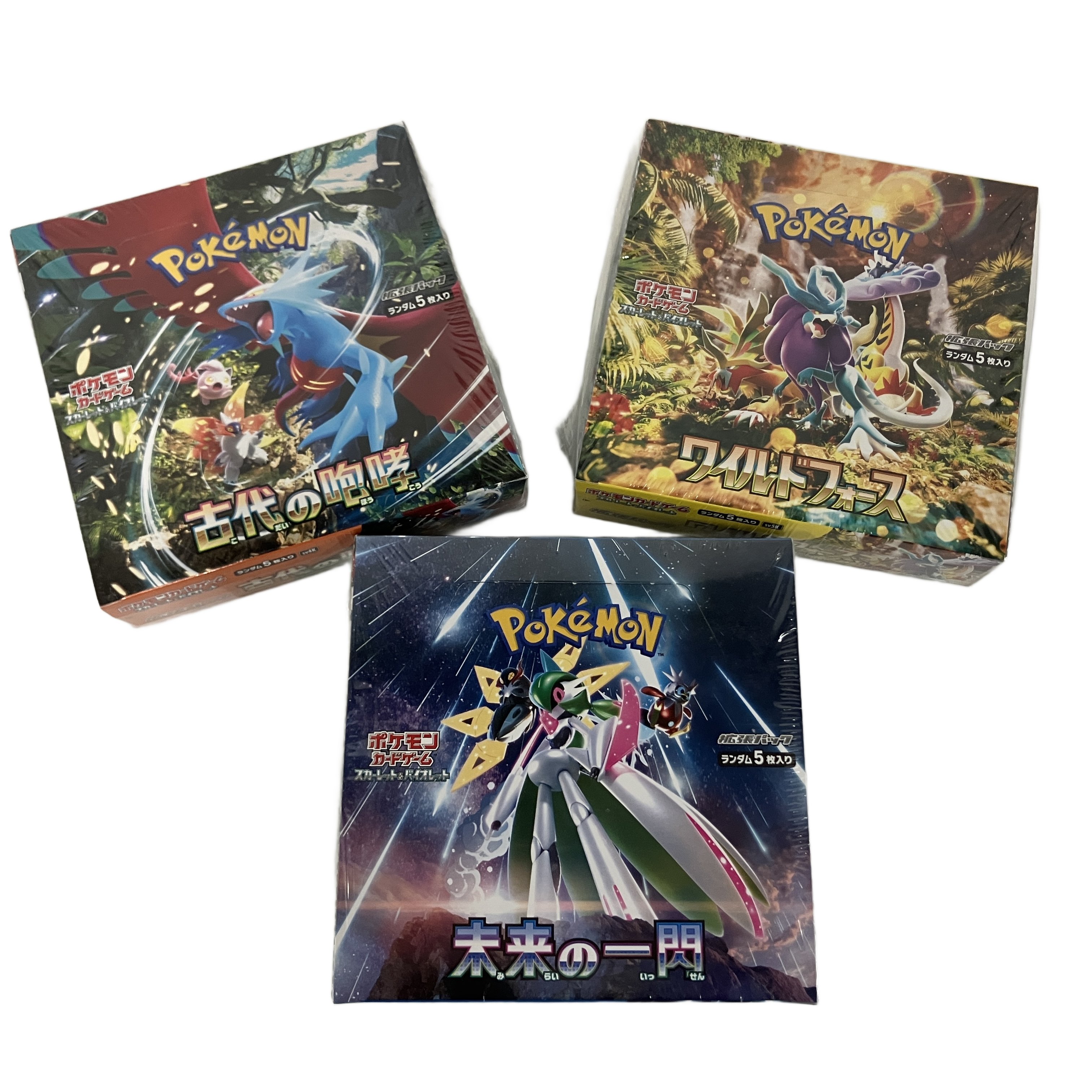 Pokemon ポケモンカードゲーム 未来の一閃、ワイルドフォース、古代の咆哮 拡張パック ボックス 未使用 シュリンク未開封