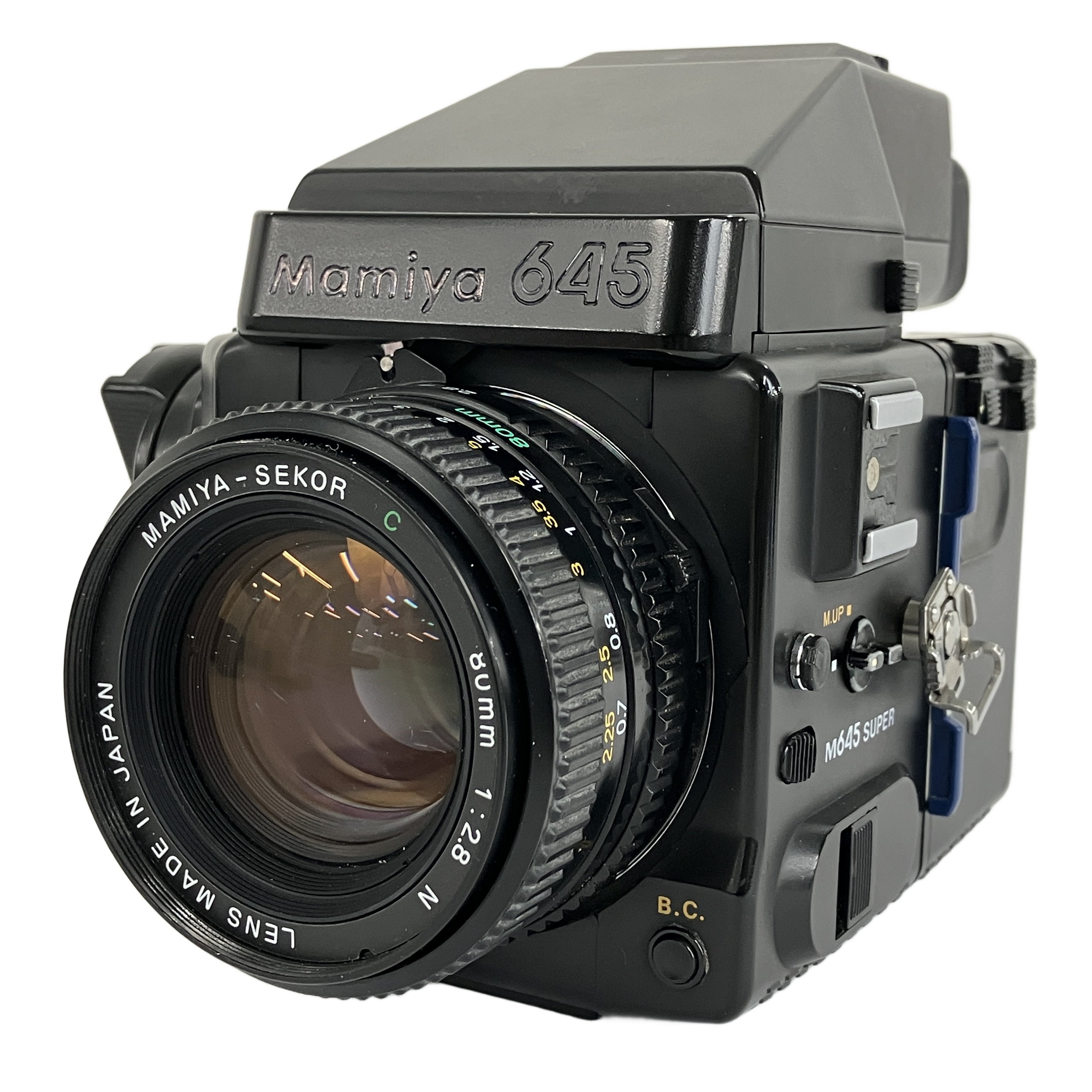 Mamiya M645 SUPER 中判カメラ ボディ MAMIYA-SEKOR C 80mm F2.8 レンズ付 ワインダーグリップ プリズムファインダー有 ジャンク