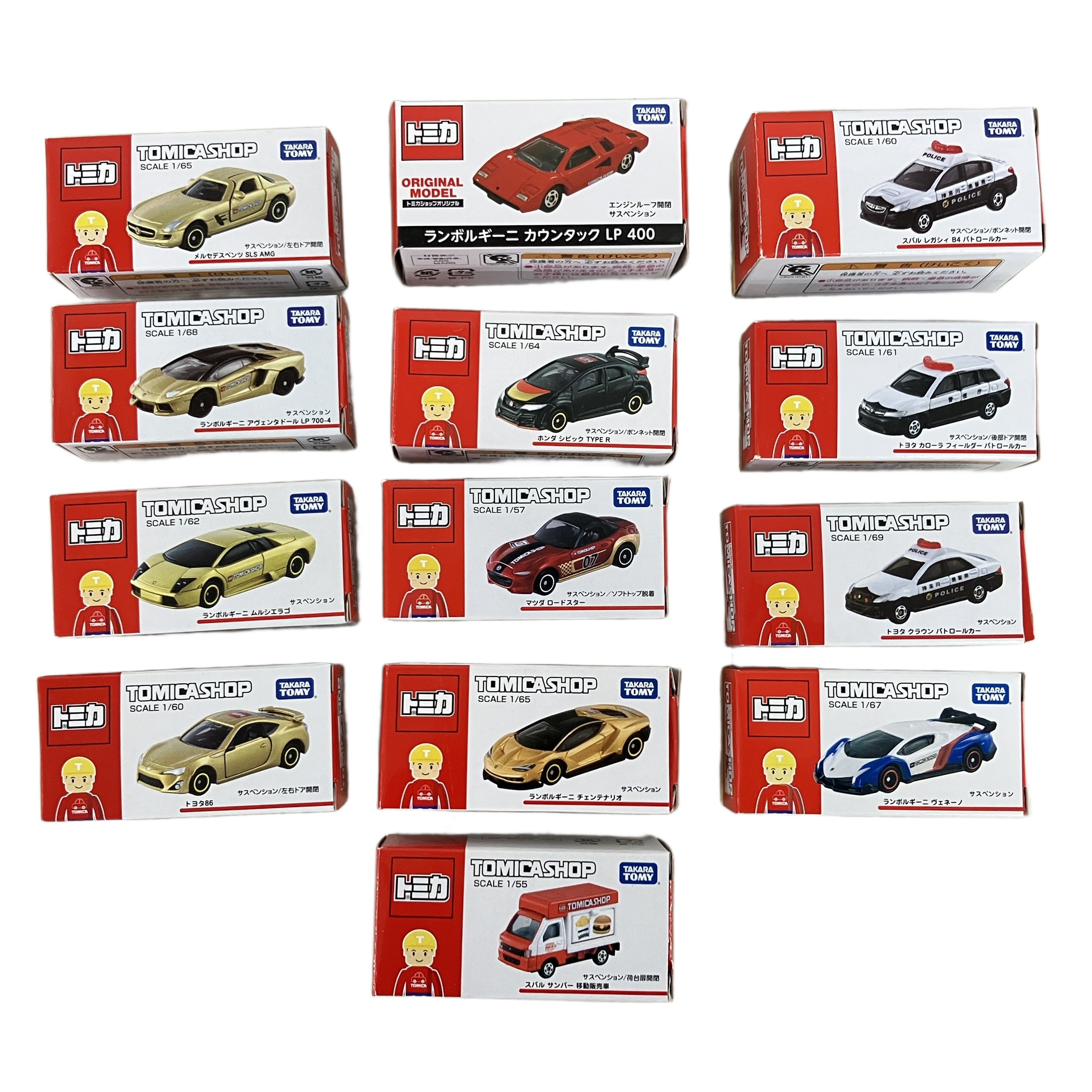 タカラトミー TOMICA SHOP ランボルギーニ ムルシエラゴ スバルレガシィ B4 パトロールカー 13点おまとめセット ミニカー 中古