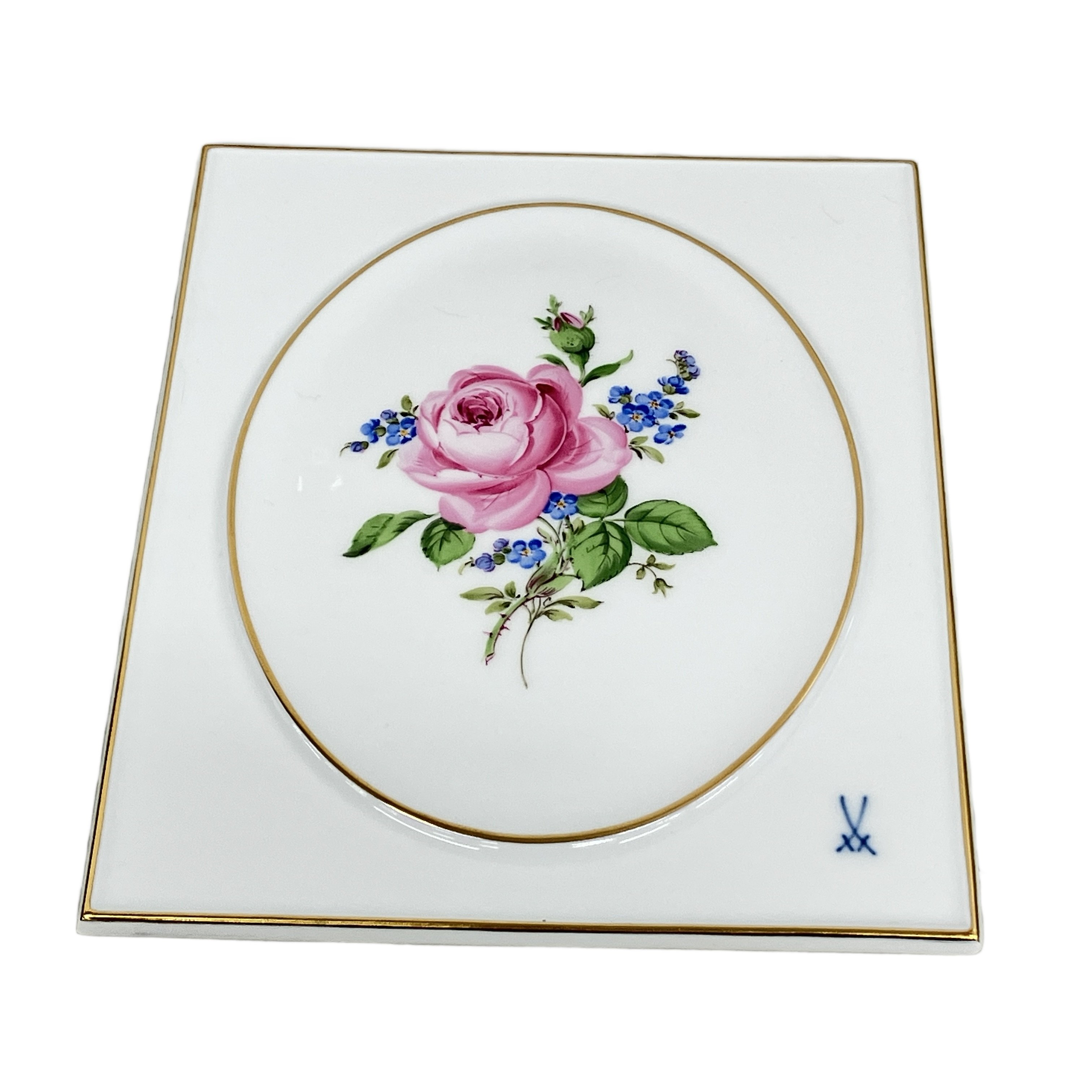 マイセン ローズ ピンクのバラ 陶板画 硬質磁器 ピンクローズ 陶板 陶画 中古