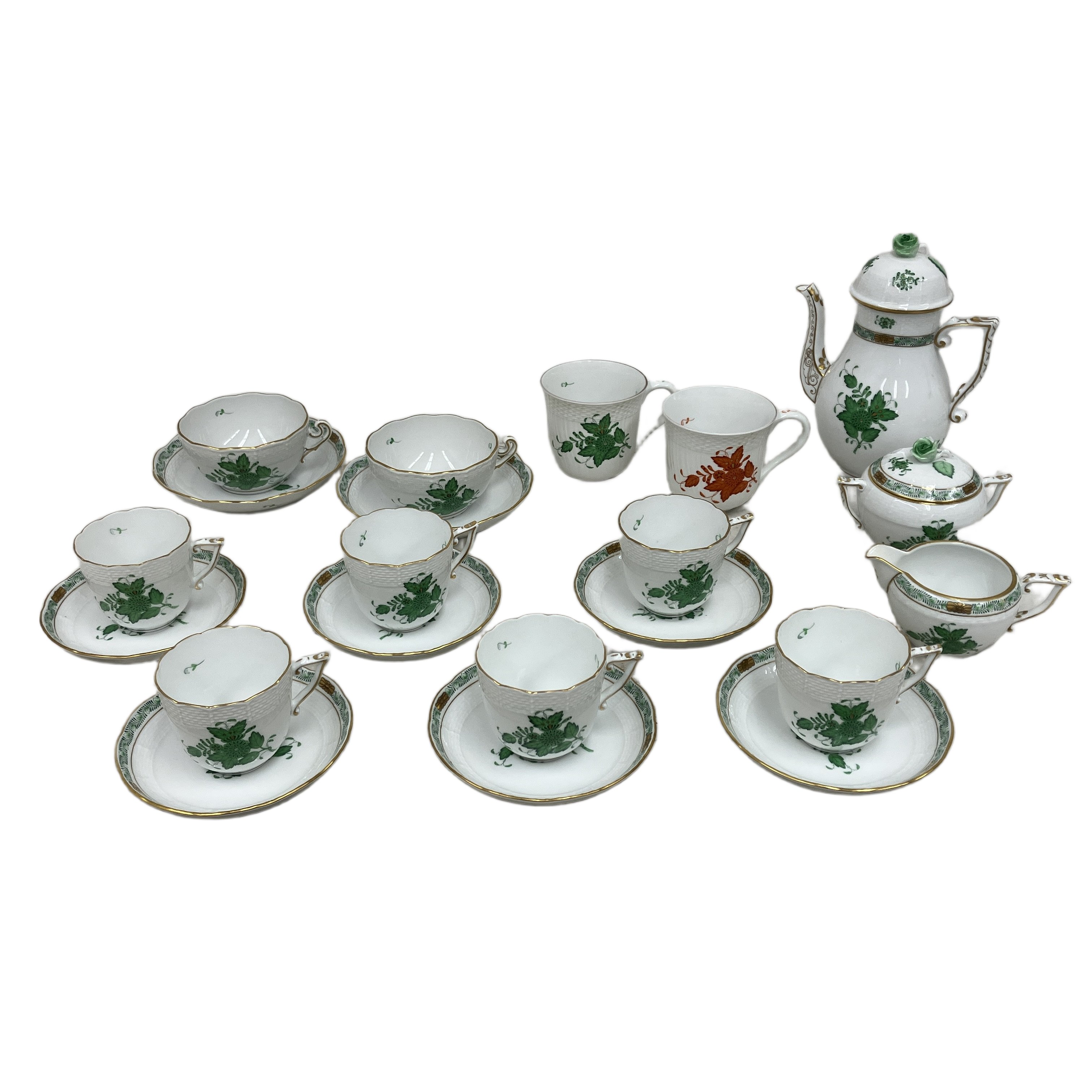 HEREND アポニーグリーン アポニーオレンジ カップ &ソーサー ティーポット等 19点セット 食器 陶磁器 ジャンク