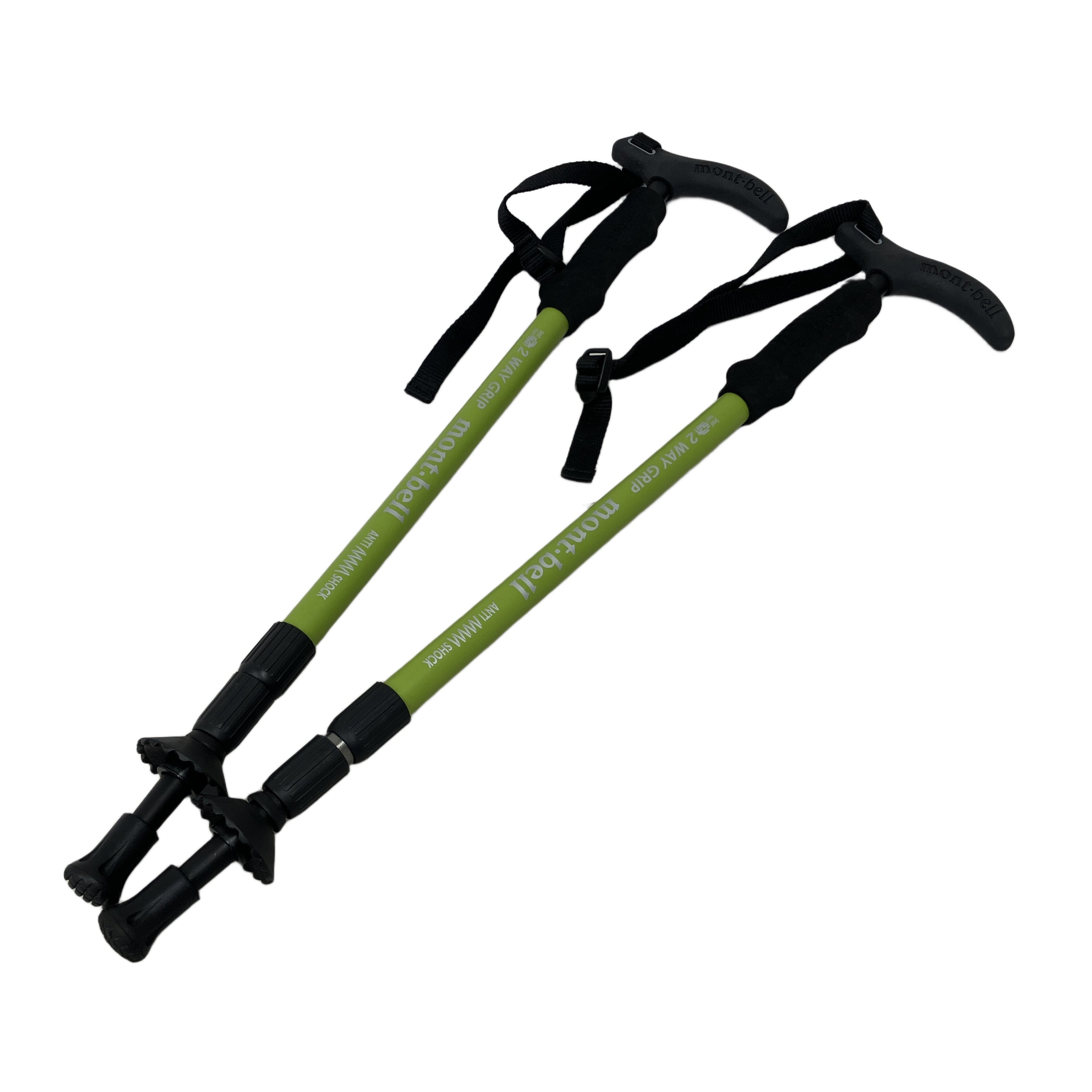 mont bell モンベル 2-Wayグリップ アンチショック S 2本セット グリーン I型 T型 トレッキングポール 登山 中古 美品
