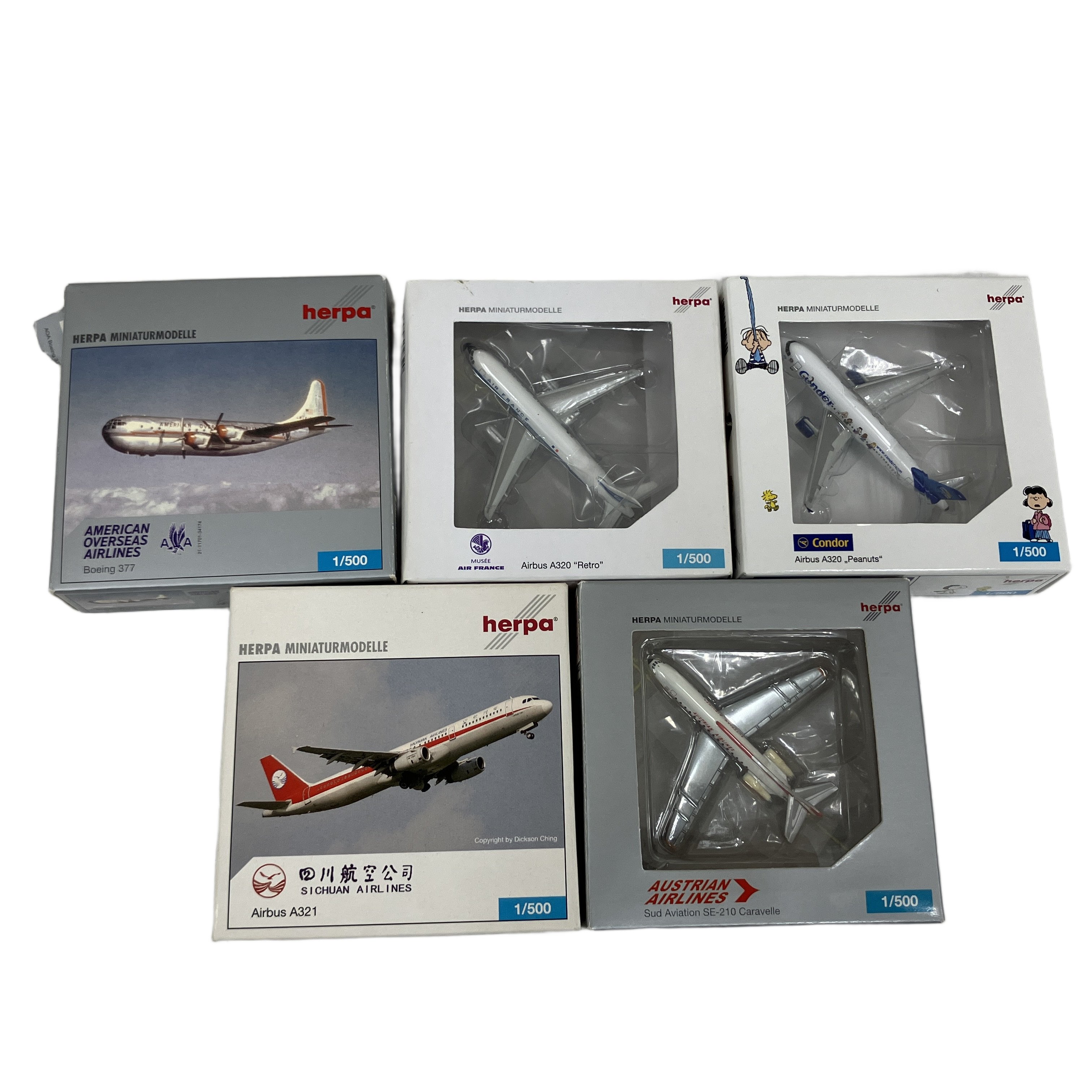 herpa A320/A321/SE-210/A320/377 飛行機模型 ヘルパ フィギュア 5点セット 1/500 中古