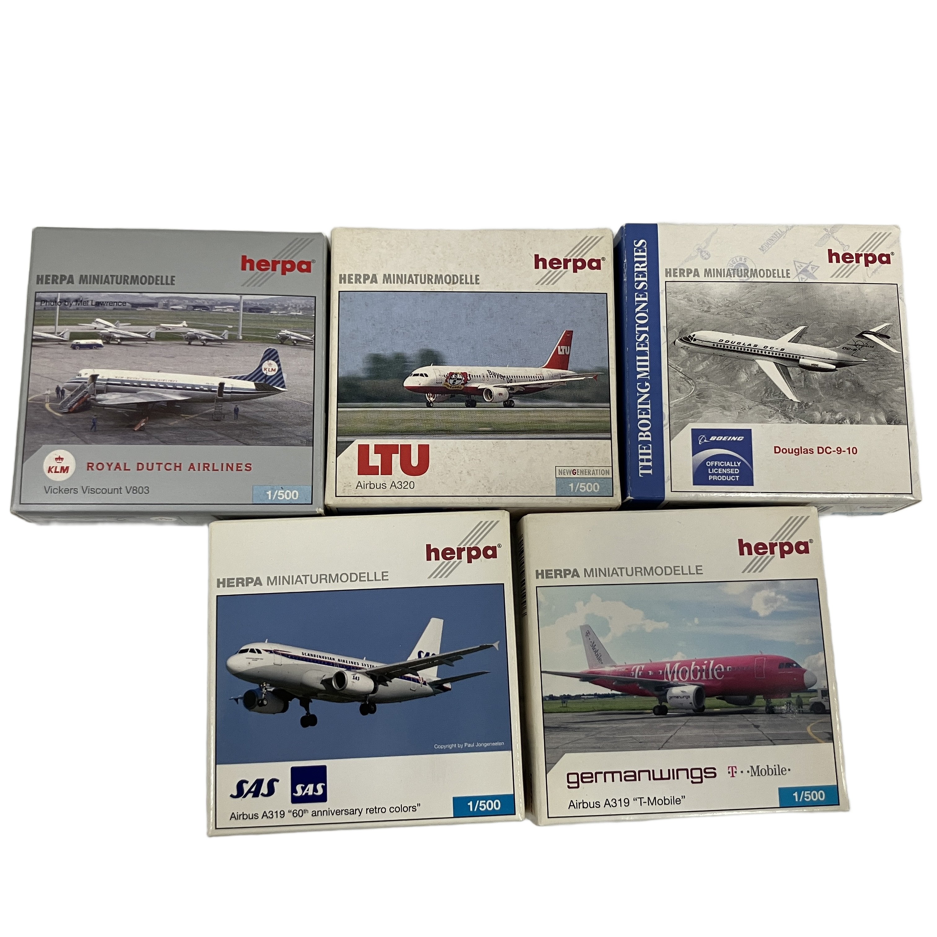 herpa A319/DC-9-10/A319/V8103/A320 飛行機模型 ヘルパ フィギュア 5点セット 1/500 中古