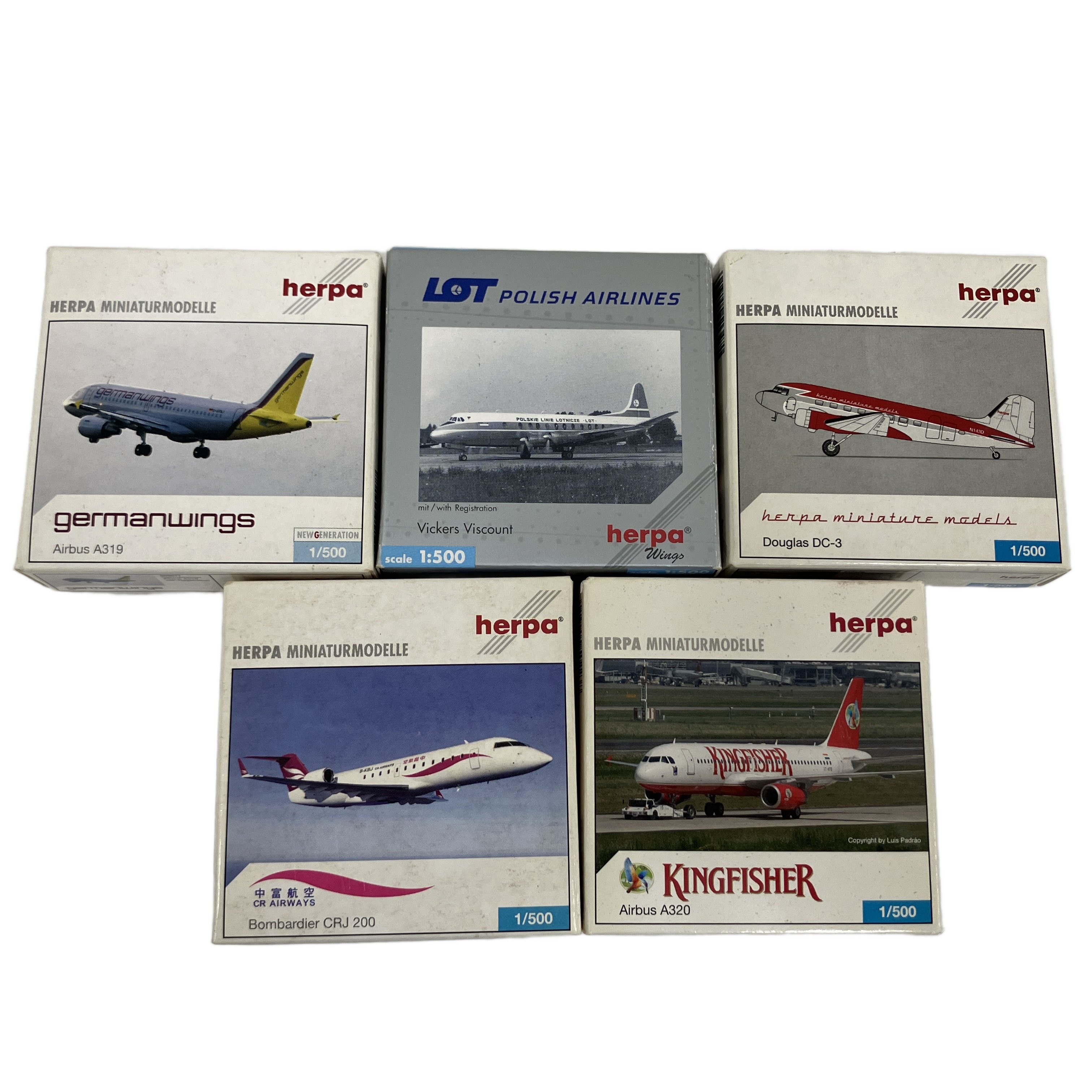 herpa A320/ DC-3/CRJ 200/ A319/512008 飛行機模型 ヘルパ フィギュア 5点セット 1/500 中古