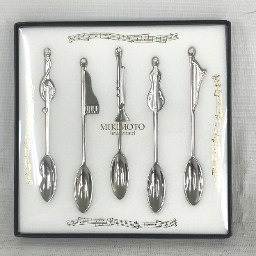 MIKIMOTO 真珠 パール付き 楽器 音符モチーフ スプーン 5本セット 中古