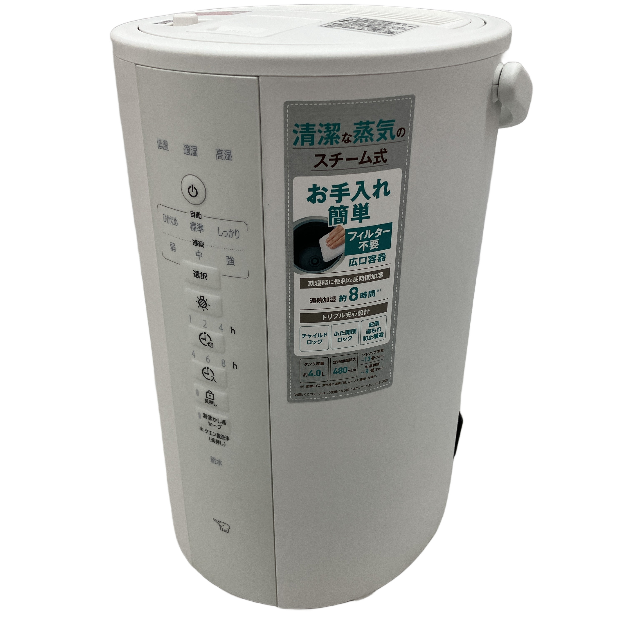 ZOJIRUSHI EE-DD50 スチーム式 加湿器 2024年製 4.0L ホワイト 自動加湿3段階 大容量 22畳対応 象印 家電 中古