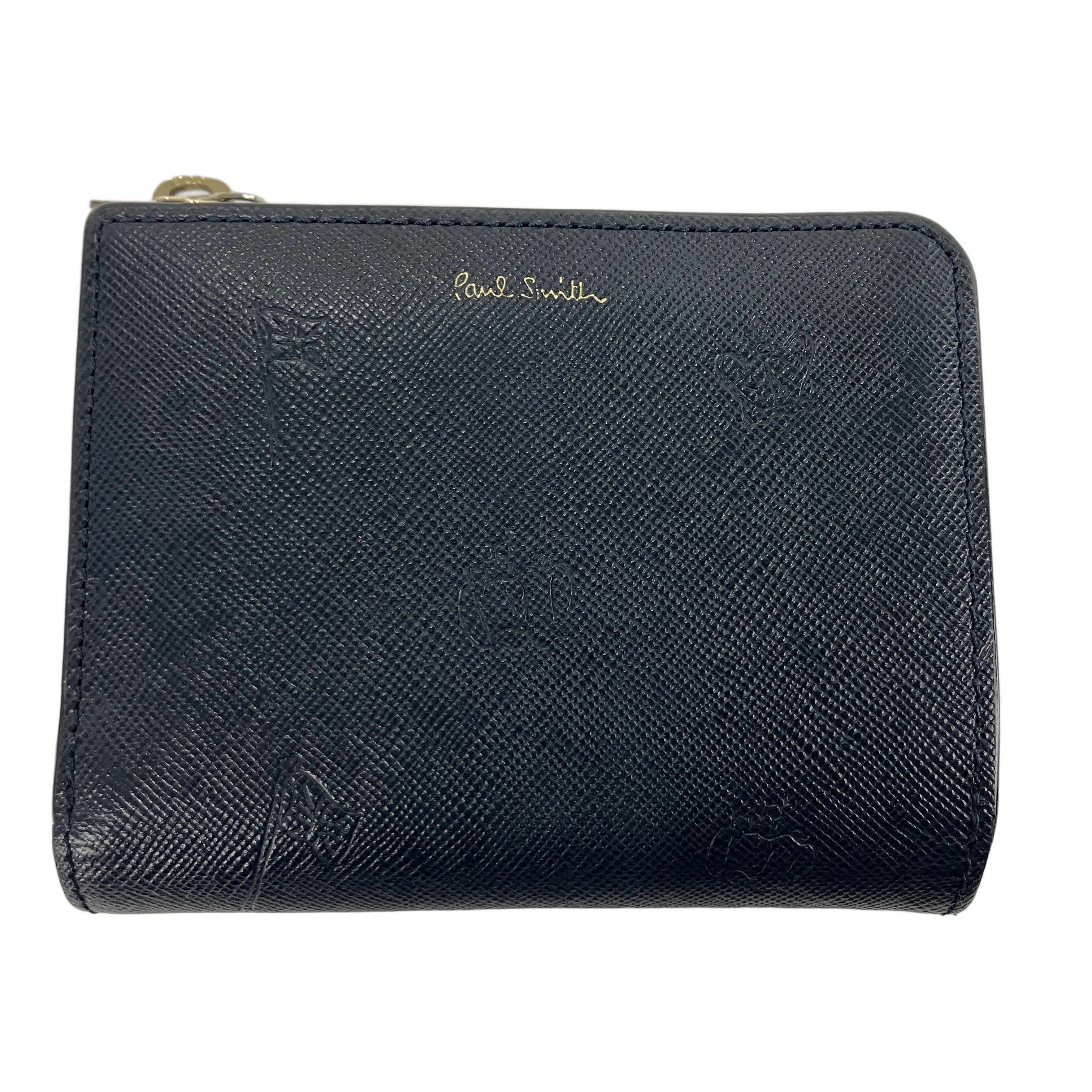 Paul Smith ポールスミス ジップストローグレイン 2つ折り財布 ネイビー 中古