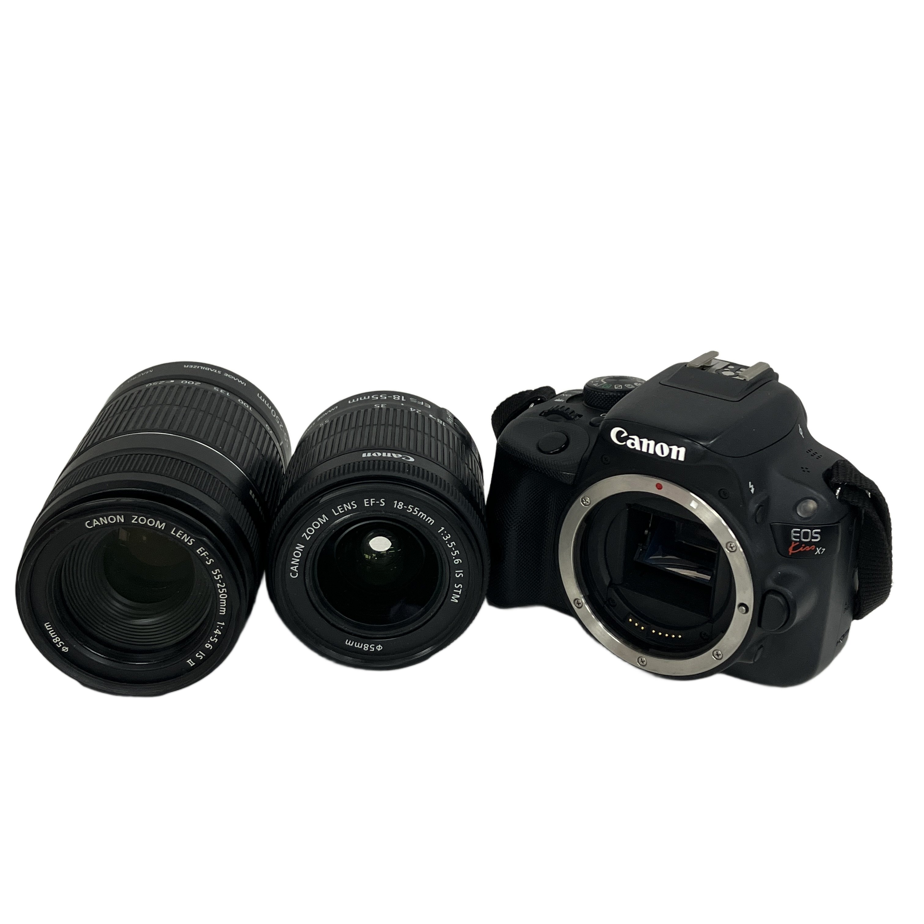 Canon EOS Kiss X7 ZOOM LENS EF-S 18-55mm 55-250mm デジタル 一眼 レフ カメラ ダブル ズーム レンズ キット キャノン 中古