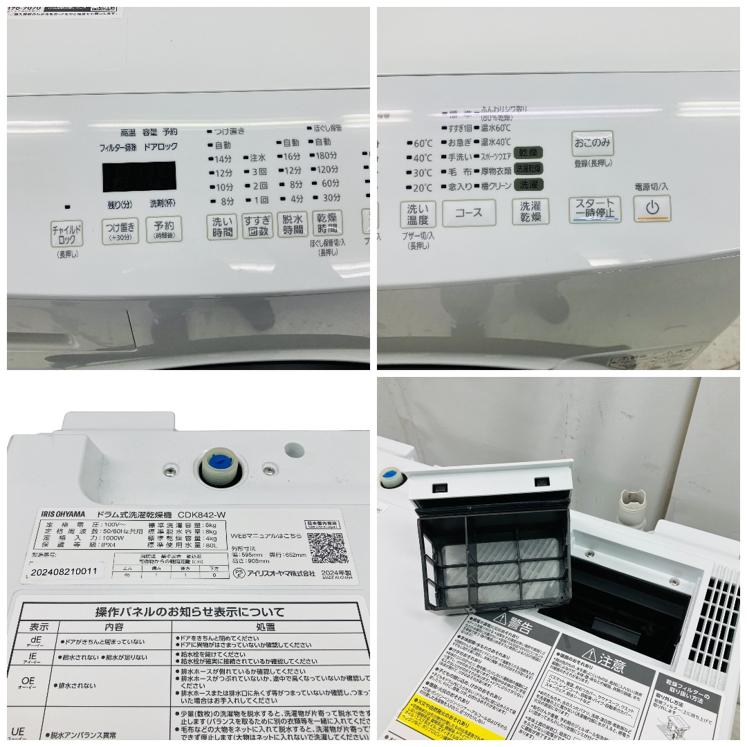 アイリスオーヤマ CDK842-W ドラム式洗濯乾燥機 2024年製 左開き 洗濯8kg 乾燥4kg 温水洗浄 ホワイト 中古