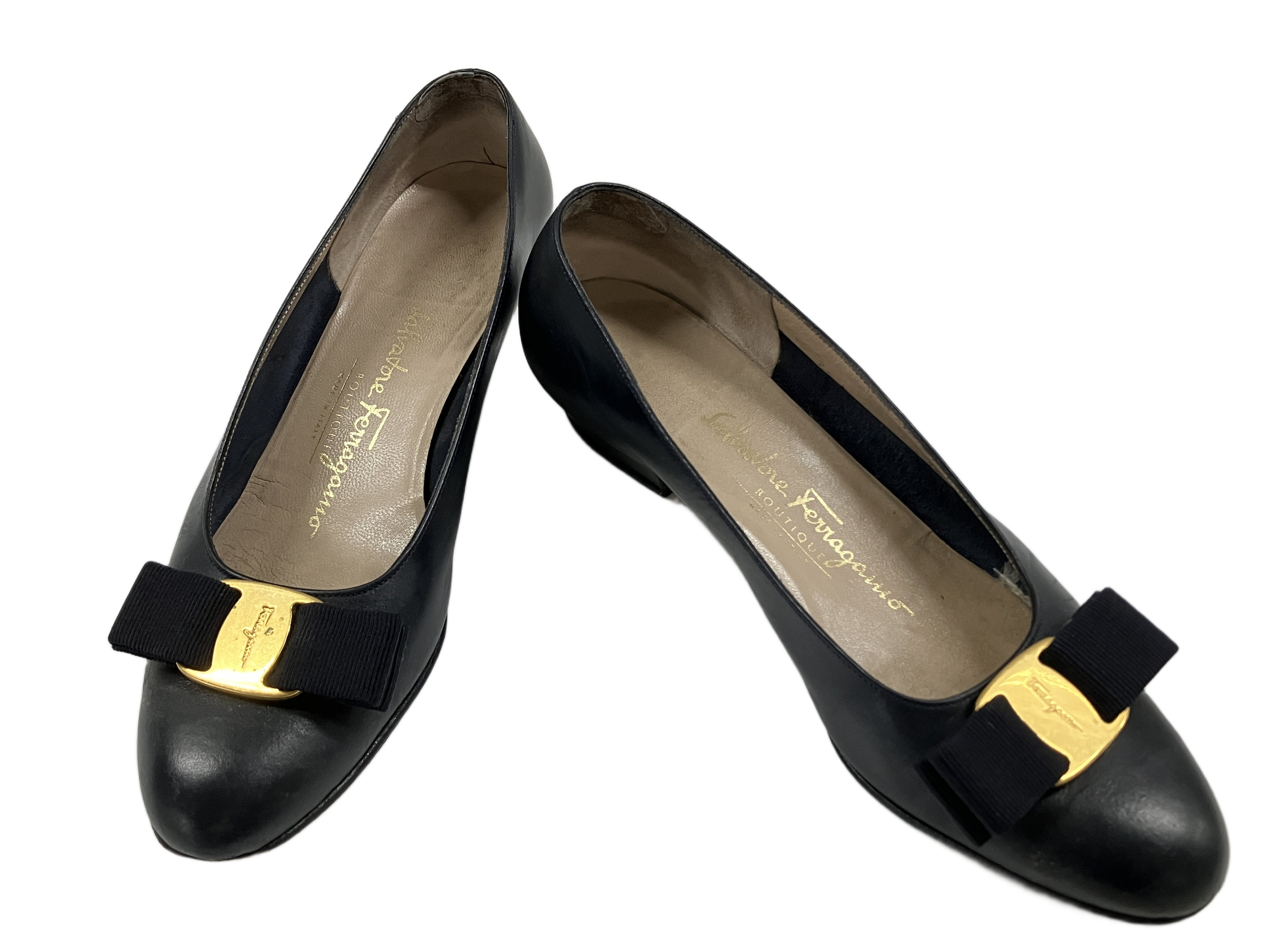 Ferragamo DG01614 ヴァラ パンプス ブラック系 5 1/2C フェラガモ 中古
